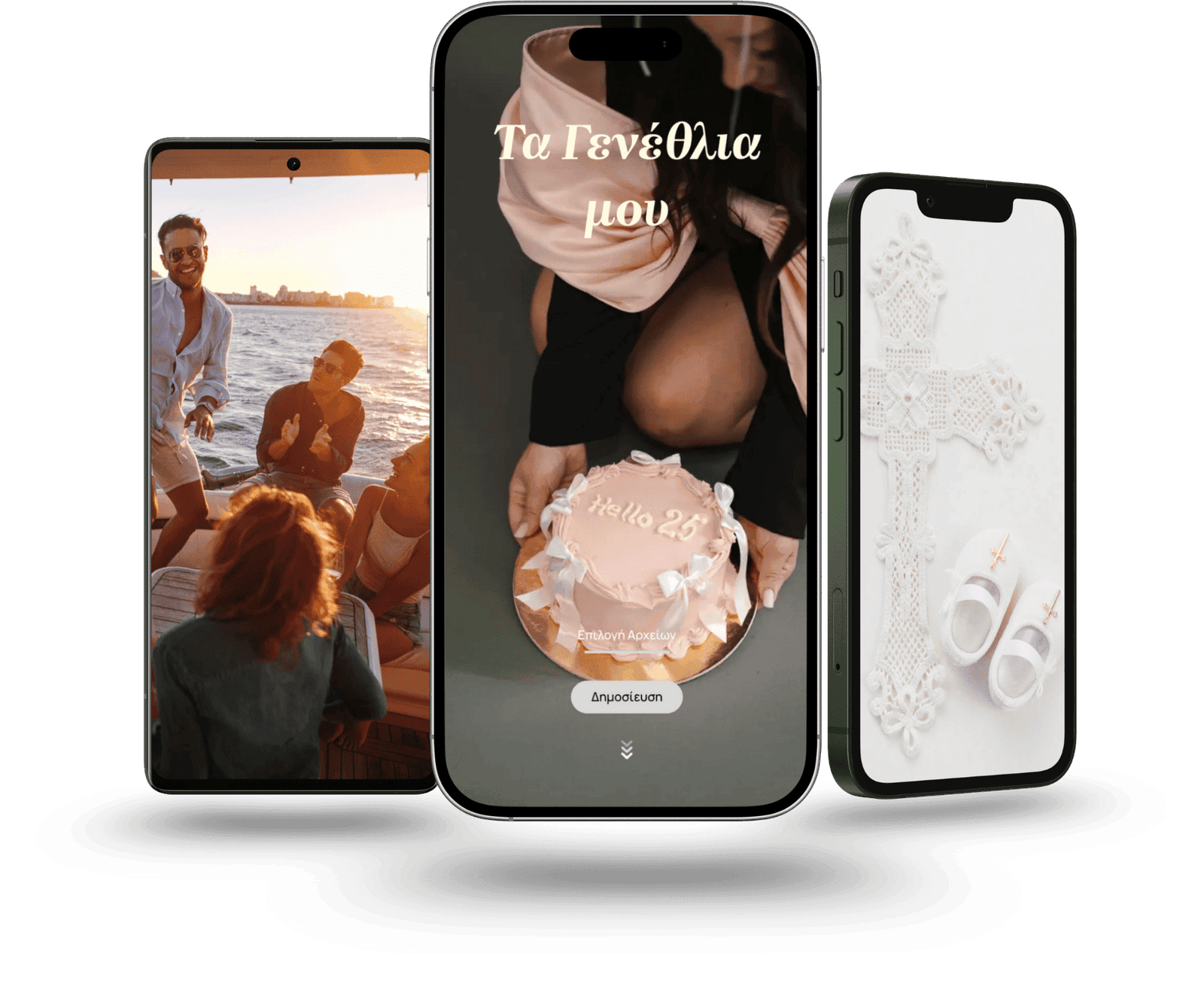 Με το Μίνι Πλάνο, μαζεύεις γρήγορα και απλά τις φωτογραφίες και τα βίντεο των αγαπημένων σου, χωρίς να χρειάζεται εφαρμογή. Απλά στέλνεις έναν σύνδεσμο ή QR code στους καλεσμένους σου και βλέπεις να γεμίζει η συλλογή με τις πιο όμορφες στιγμές.